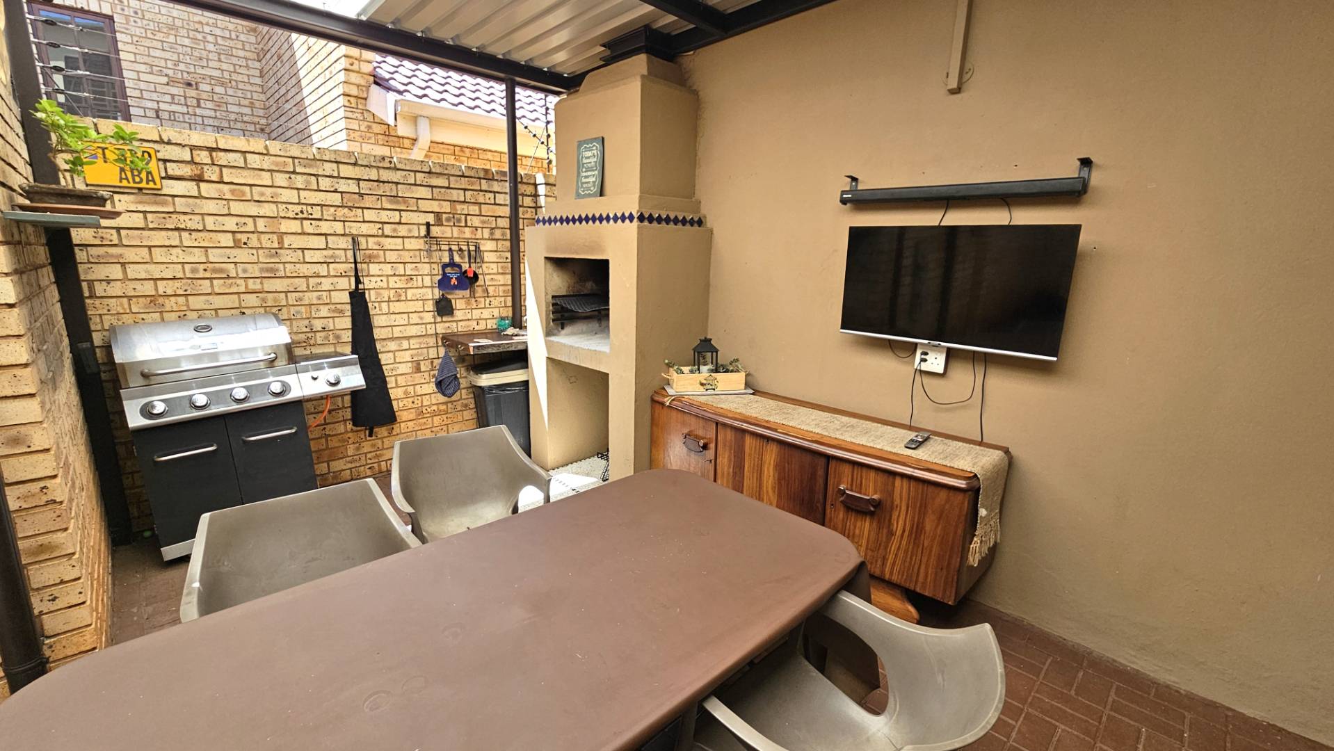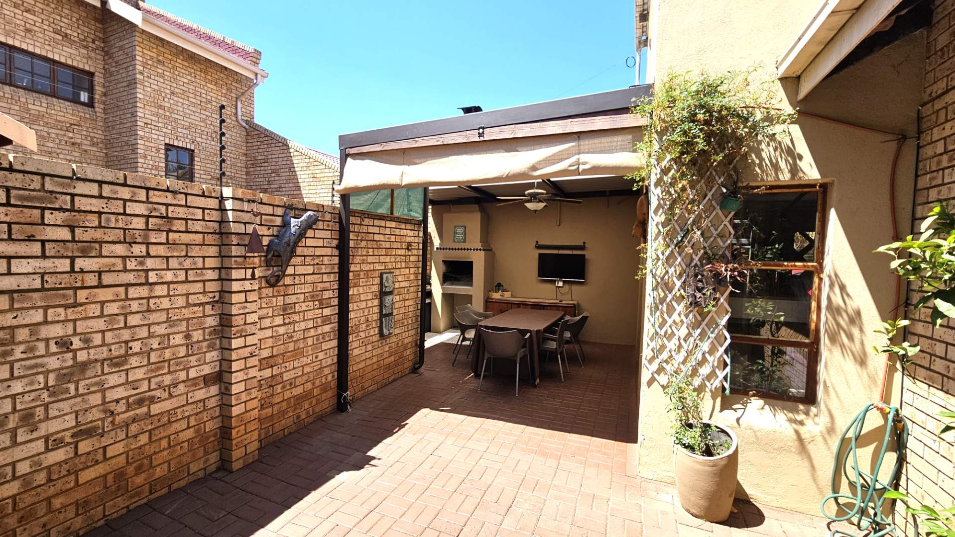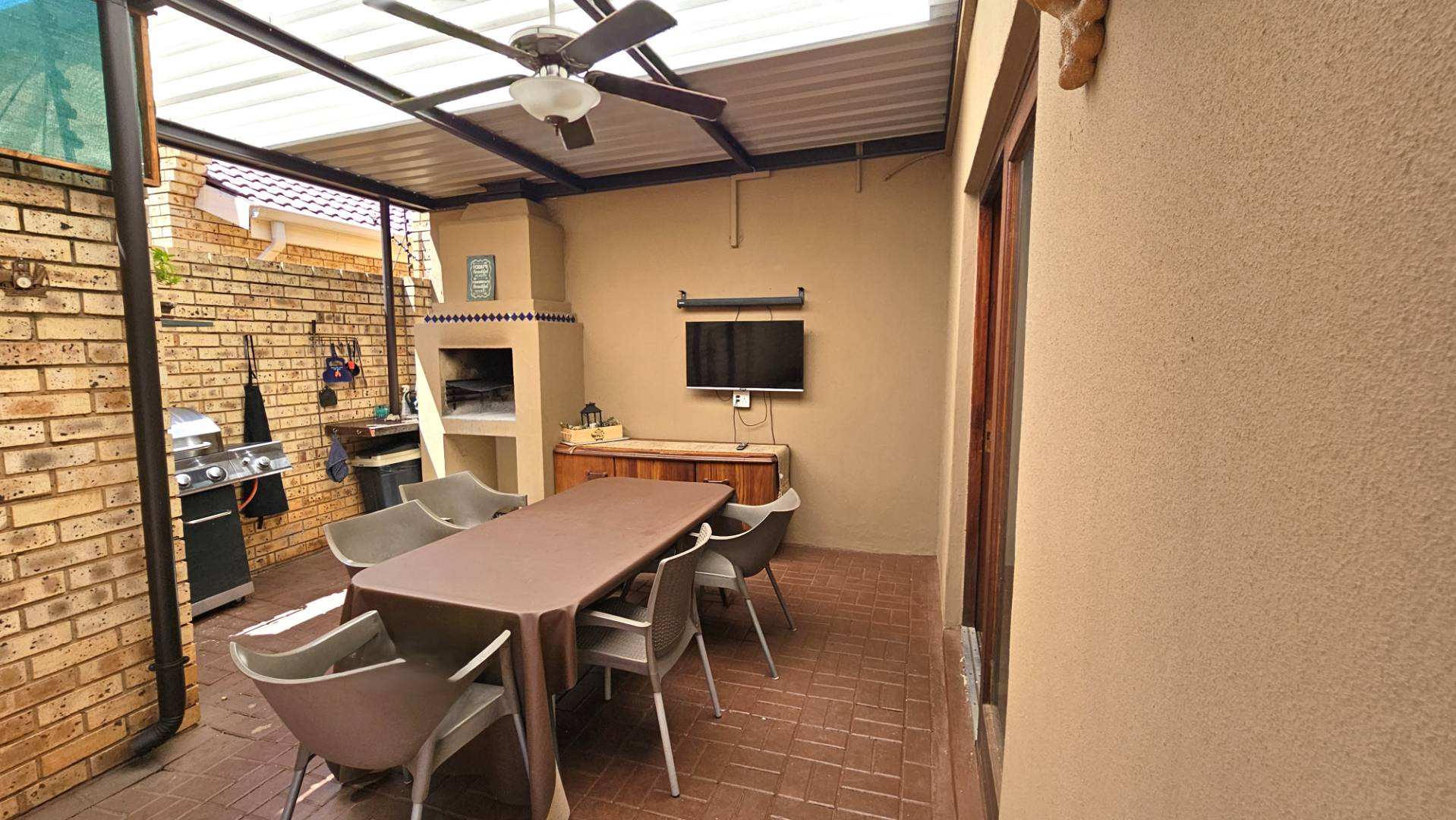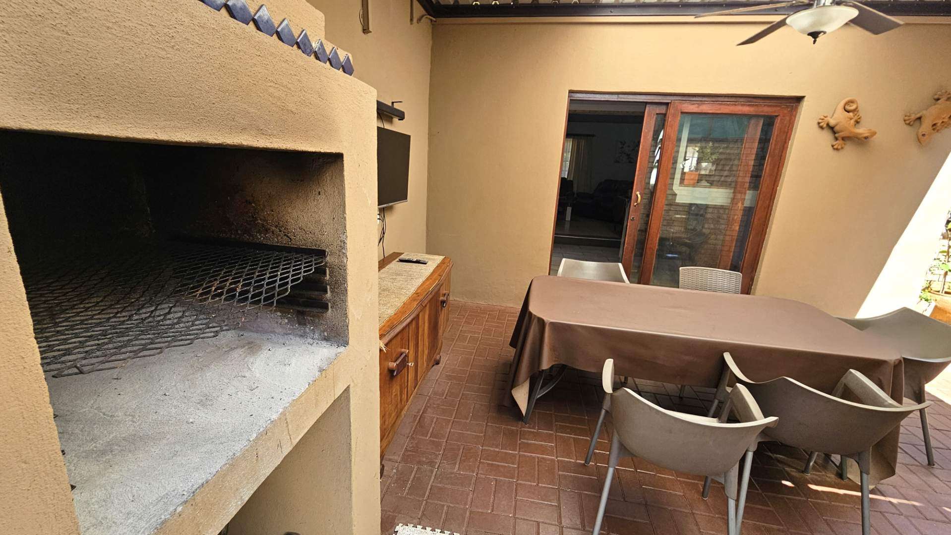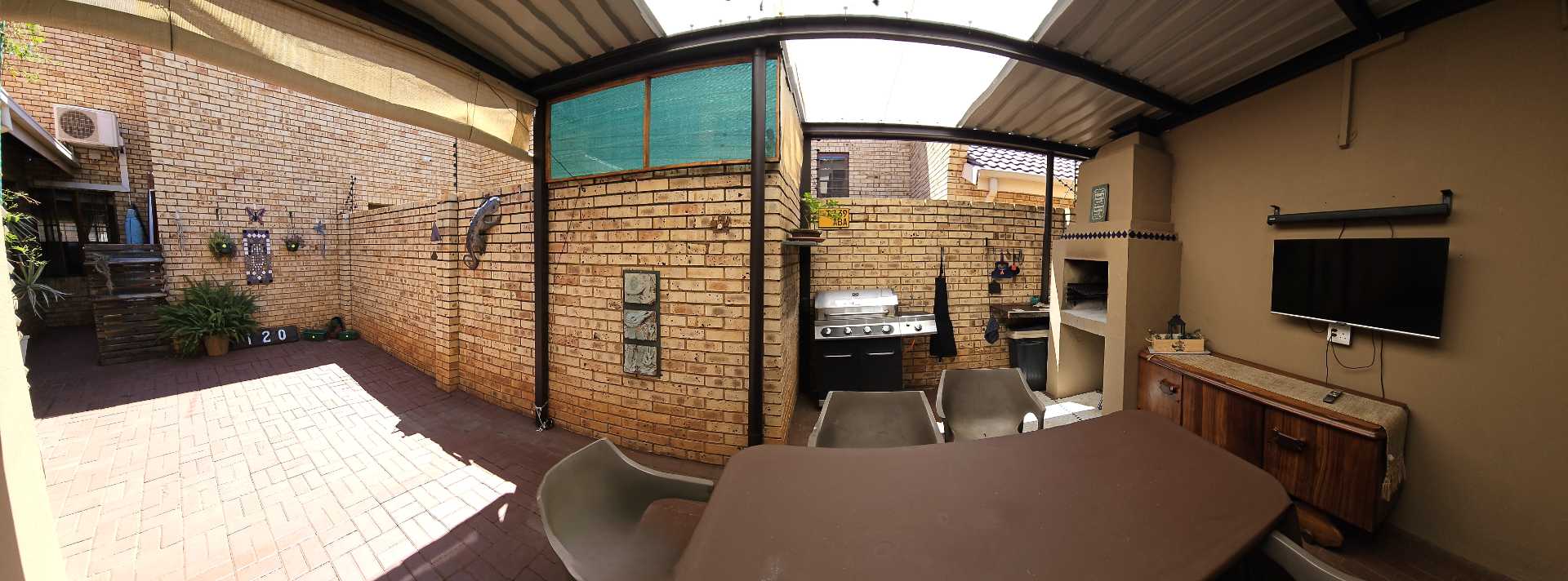 Under cover patio with built in braai situated in a private courtyard where entertaining