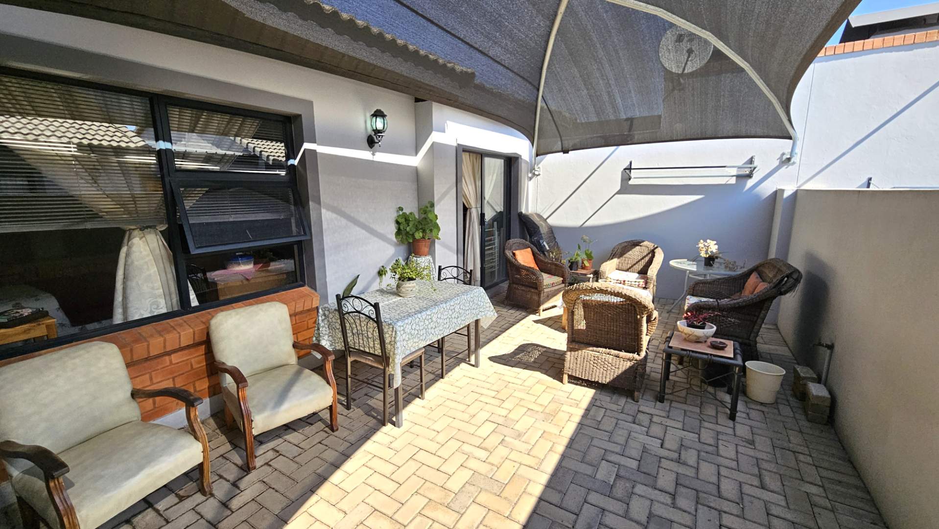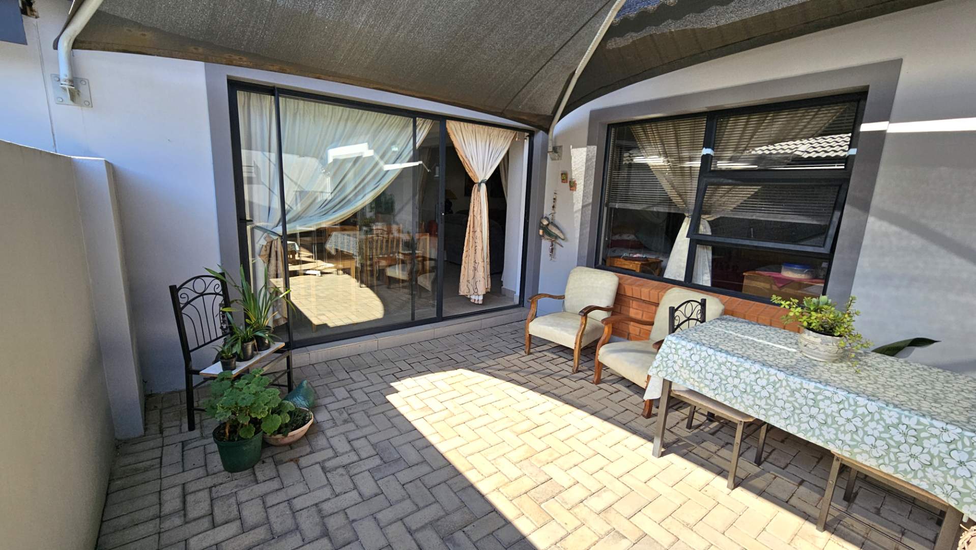 The home opens onto a private covered patio—an inviting space ideal for morning coffee, afternoon relaxation, or weekend gatherings—framed by immaculate communal gardens and landscaped surroundings.