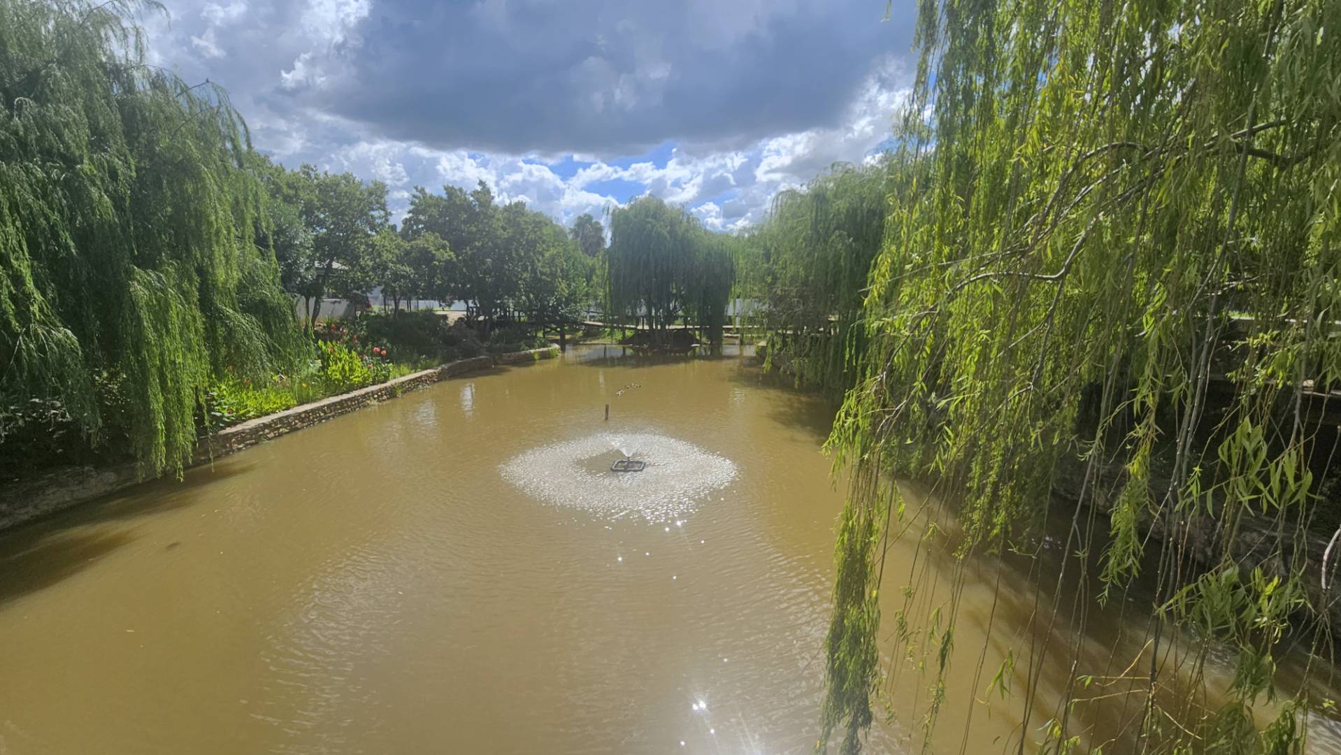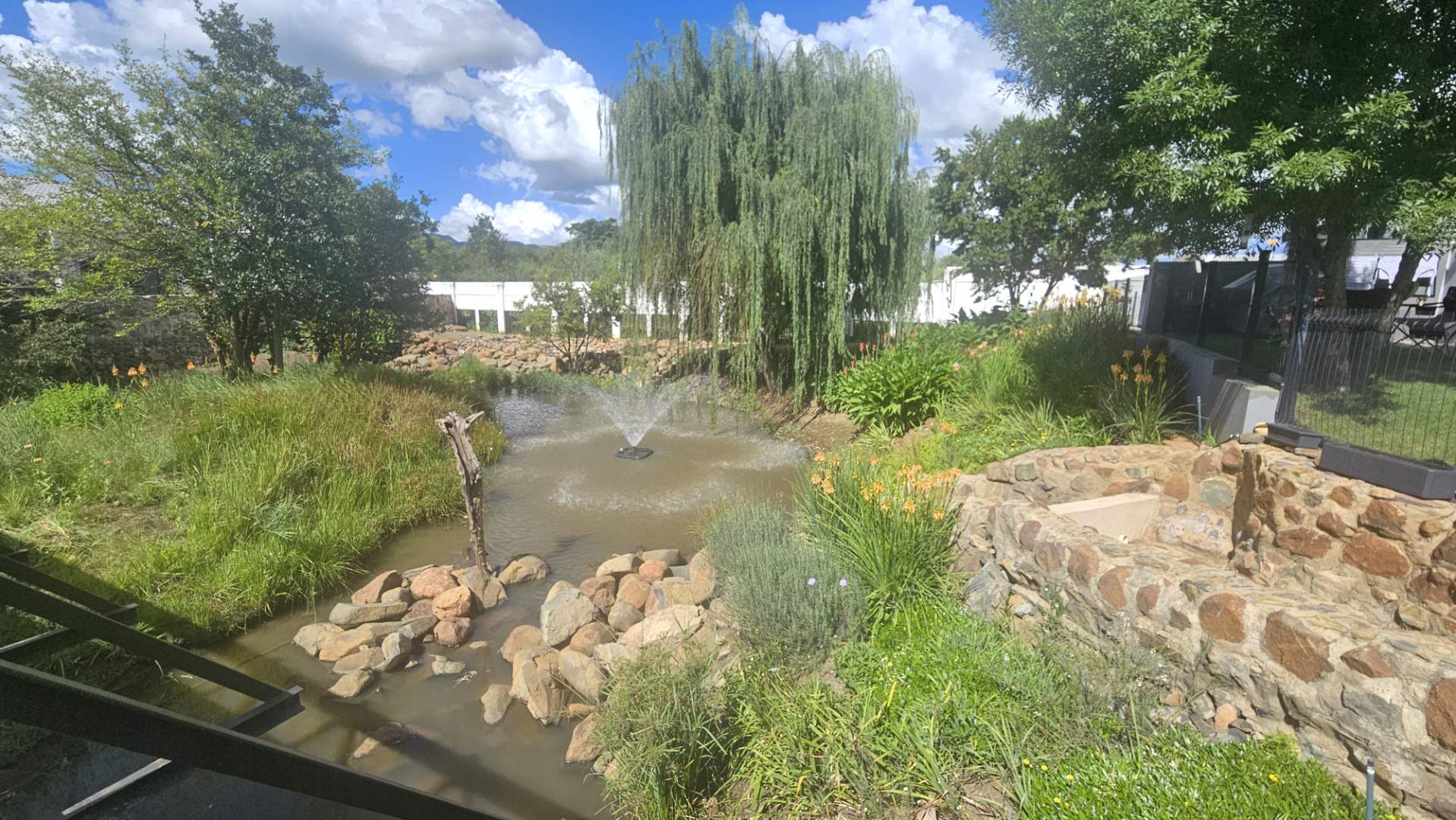 A picturesque on-site dam, perfect for leisurely strolls and quiet reflection